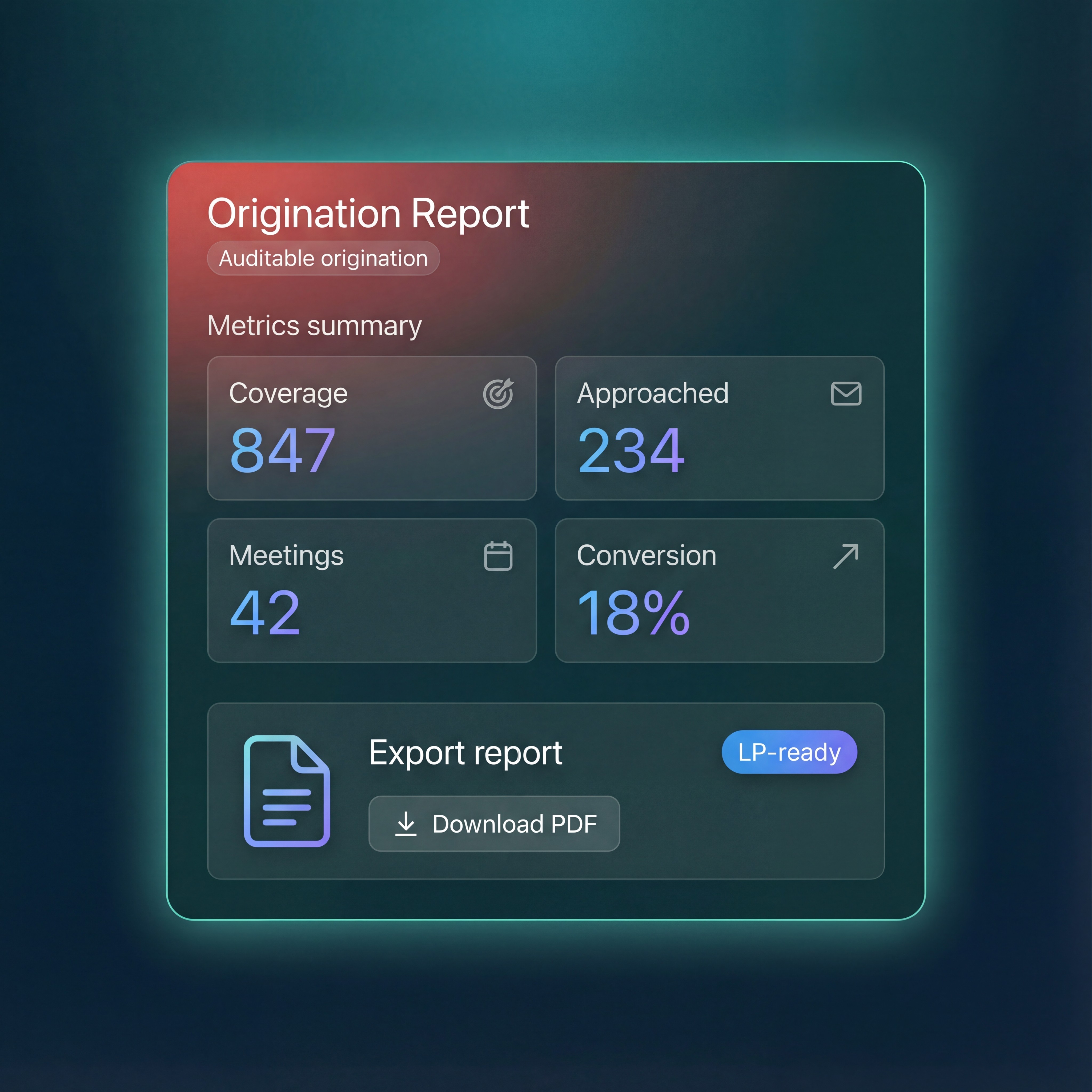 Give LPs proof of proprietary dealflow in your next fundraise—auditable, systematised UK origination, not anecdotes. Process you can demonstrate. Pipeline you can track.